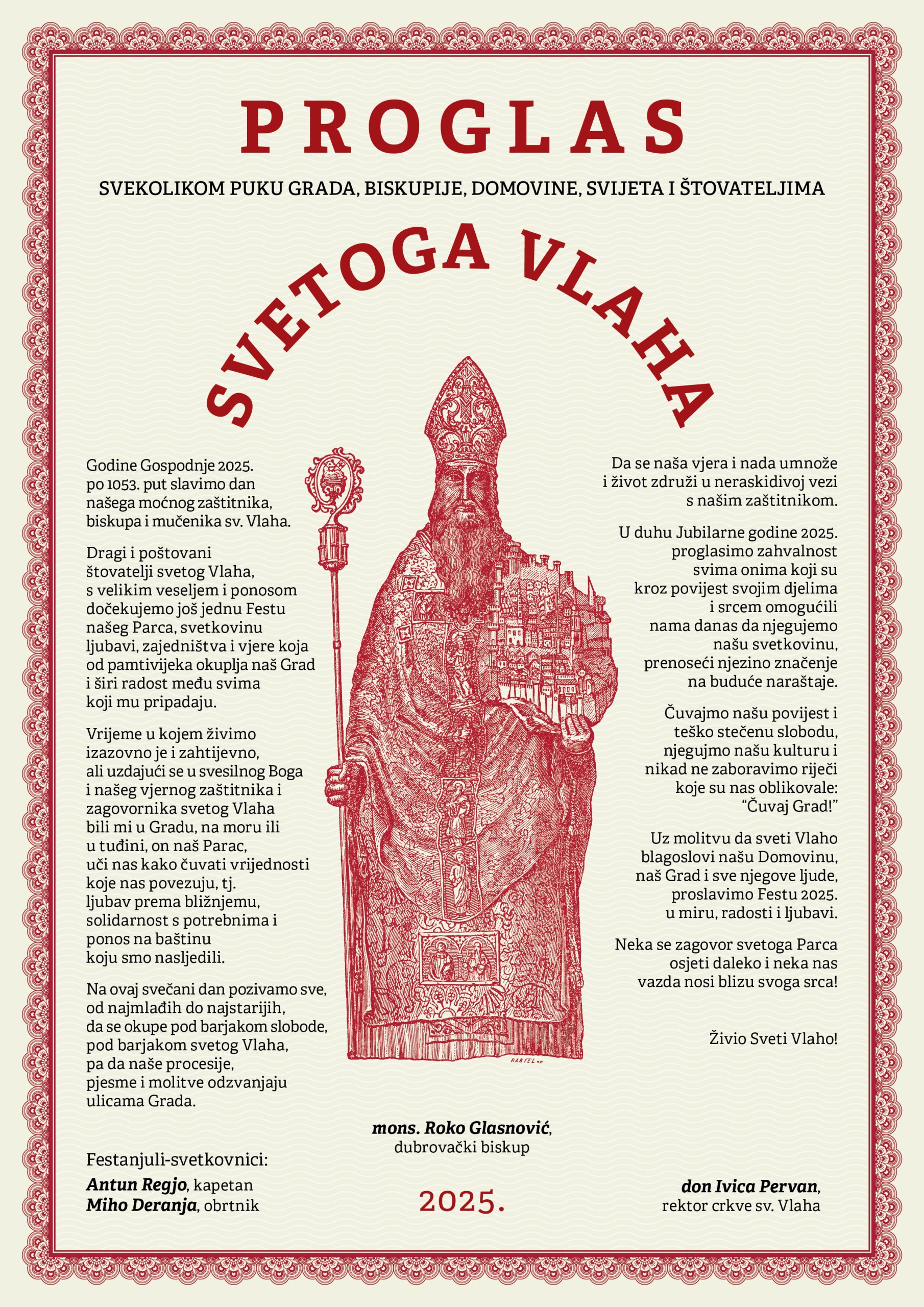 Proglas Feste sv. Vlaha 2025. godine možete pogledati OVDJE.